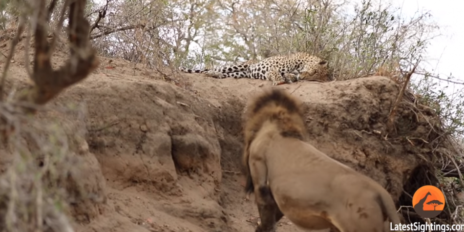 León sorprende a leopardo que se encontraba durmiendo…