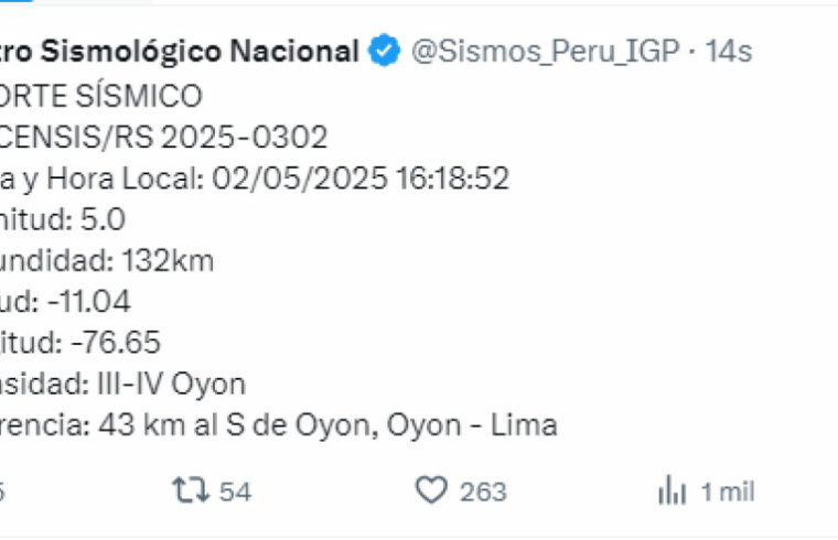 Usuarios en redes sociales comentaron que el reciente sismo de magnitud 5,0 se sintió en Oyón – Lima. «Aquí en la zona de Chorrillos si se llegó a sentir», señaló un internauta a través de X. También hay reportes ciudadanos desde Miraflores, San Martín de Porres, Lince, Breña, Santiago de Surco, Puente Piedra y más zonas de la capital. «Pensé que era un carro», agregó una usuaria afectada.