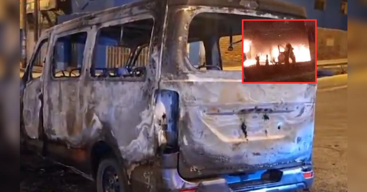 Testigos del suceso relatan que el chofer estaba esperando pasajeros cuando el agresor, a bordo de una moto lineal, se acercó y arrojó el artefacto incendiario. En cuestión de segundos, la combi se vio envuelta en llamas, poniendo en peligro a los pasajeros que se encontraban a bordo. La rápida acción del fuego dejó el vehículo completamente calcinado, con su carrocería, motor y estructura devorados por las llamas.